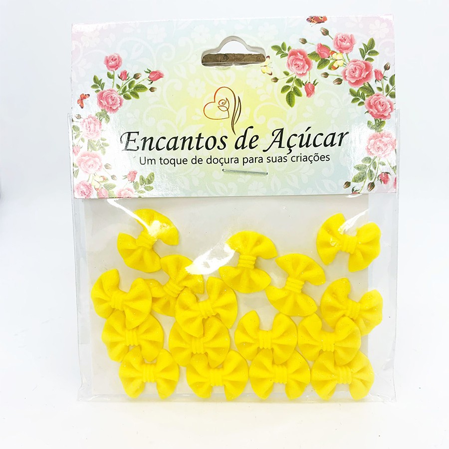 Confeitos Comestíveis Laço Gravata Amarelo - Flores e Encantos de Açúcar Rizzo Confeitaria