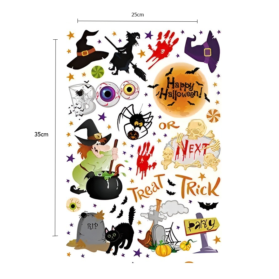 Adicione um toque assustador e divertido à sua decoração de Halloween com esta cartela de adesivos temáticos de olhos, gato preto, mãos ensanguentadas, bruxas e caveiras. Esta cartela oferece uma variedade incrível de adesivos que capturam perfeitamente o espírito do Dia das Bruxas. Perfeitos para decorar abóboras, janelas, portas, convites de festa ou até mesmo fantasias, esses adesivos adicionam instantaneamente um elemento assustador e divertido à sua celebração de Dia das Bruxas.