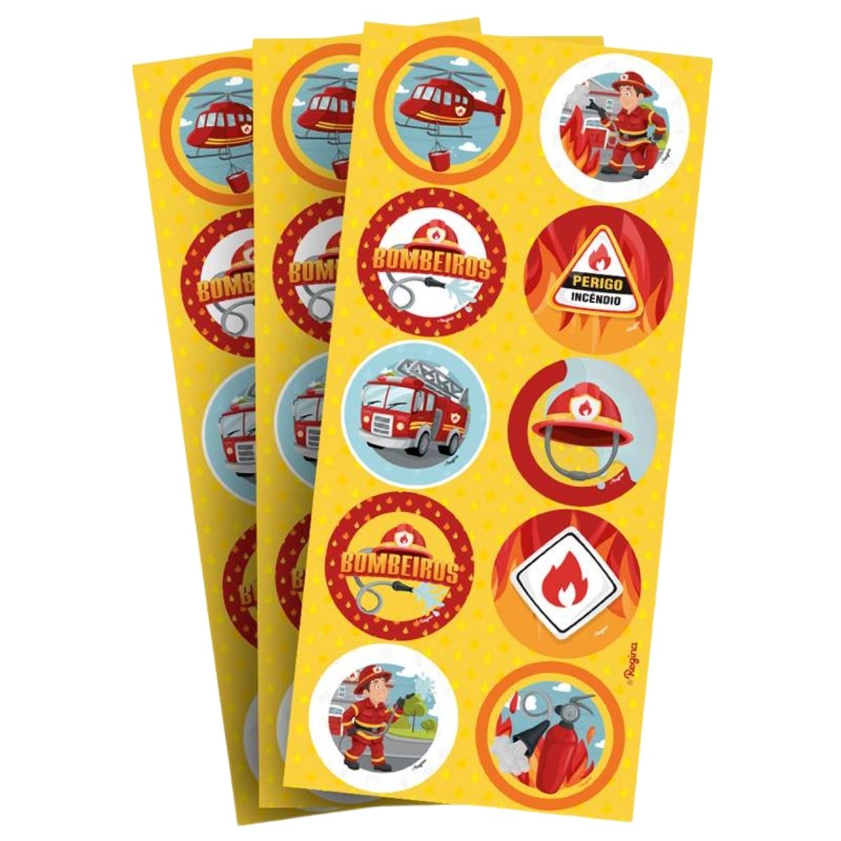 O Adesivo Redondo – Bombeiros – 4x4cm é o complemento perfeito para personalizar lembrancinhas, embalagens e convites em festas com tema de bombeiros. Com 3 cartelas, cada uma contendo 10 adesivos, você recebe 30 unidades no total, todos com estampas variadas que incluem bombeiros, hidrantes, capacetes e outros elementos icônicos do tema. O tamanho de 4x4cm é ideal para aplicar em potinhos, sacolinhas, caixinhas, tubetes e outras superfícies, garantindo um acabamento criativo, temático e cheio de personalidade.