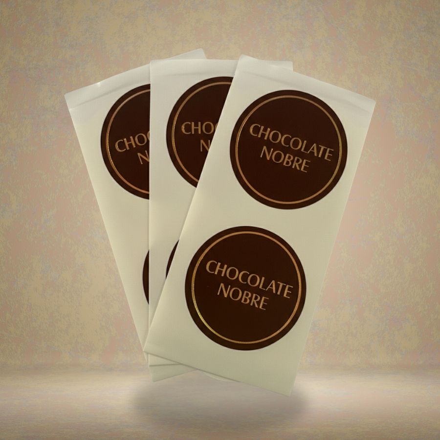 O Adesivo Redondo “Chocolate Nobre” é o toque final perfeito para valorizar seus produtos e transmitir mais sofisticação à sua marca. Ideal para aplicar em caixas, sacos, potes, embalagens para doces, ovos de Páscoa, trufas e barras artesanais, ele agrega charme e reforça a percepção de qualidade do seu chocolate.