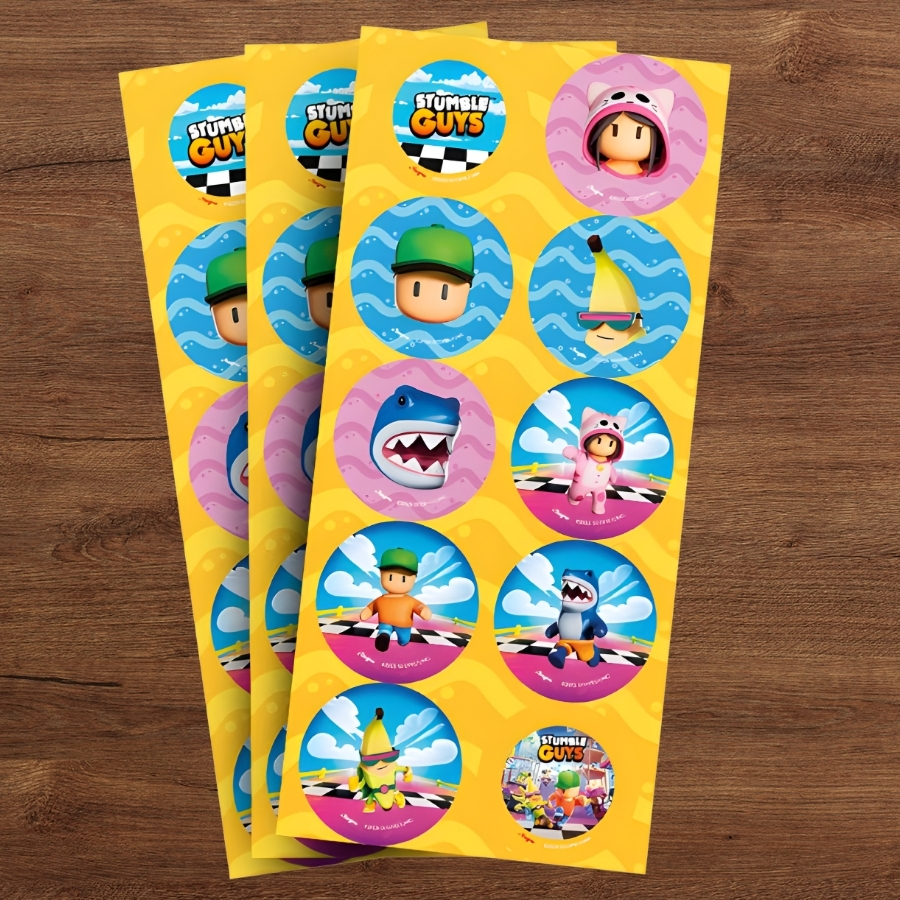 Deixe sua festa temática ainda mais completa com o Adesivo Redondo Stumble Guys! Ideal para personalizar lembrancinhas, copos, convites e embalagens, esse adesivo traz os personagens mais divertidos do jogo que conquistou crianças e adolescentes, tornando a decoração mais colorida e envolvente.