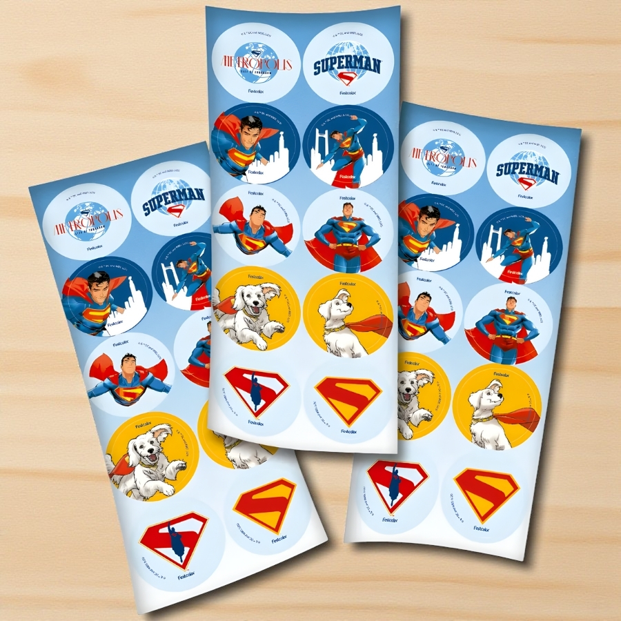 O Adesivo Redondo Superman mede 4x4cm e é produzido em material adesivo resistente, com excelente fixação e impressão de alta qualidade. Pode ser aplicado em superfícies lisas, embalagens e lembrancinhas, sendo ideal para decorações de festas infantis e temáticas.