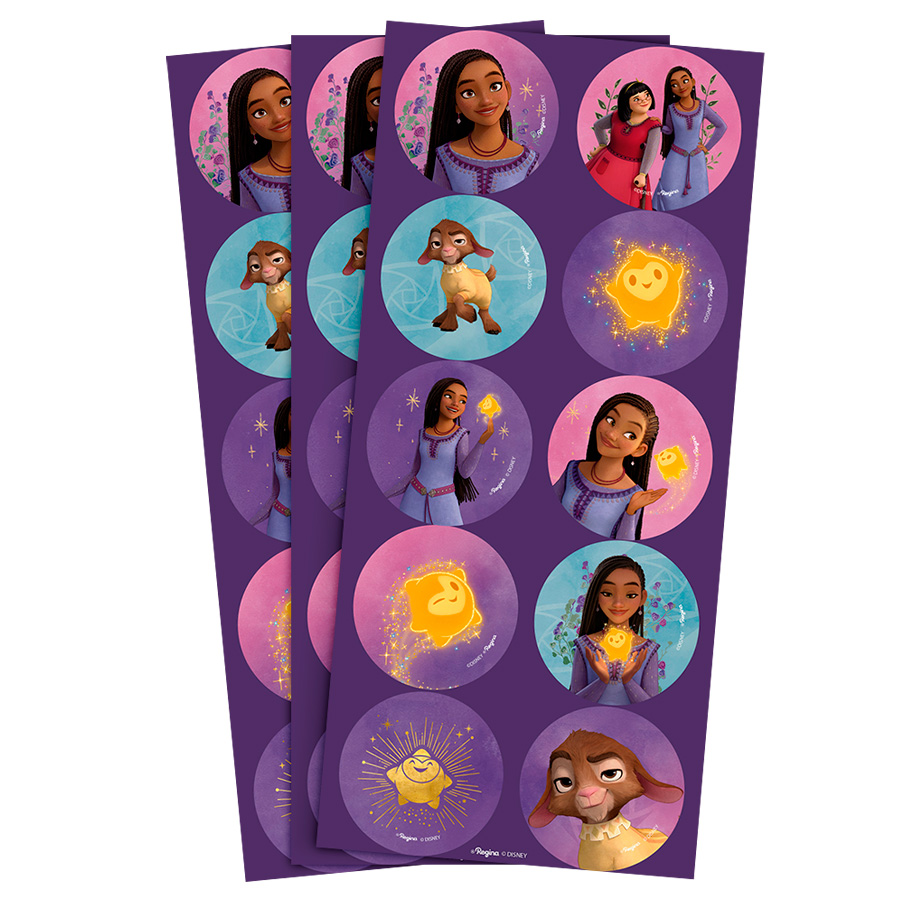 Esta cartela de adesivos redondos do Filme Wish é um verdadeiro tesouro para os fãs do filme. Feitos com materiais de alta qualidade, os adesivos são duráveis, versáteis e fáceis de aplicar, podendo ser usados em laptops, cadernos, estojos, scrapbooks, para decorar lembrancinhas e muito mais, adicionando um toque de magia do filme "Wish" ao seu dia a dia.