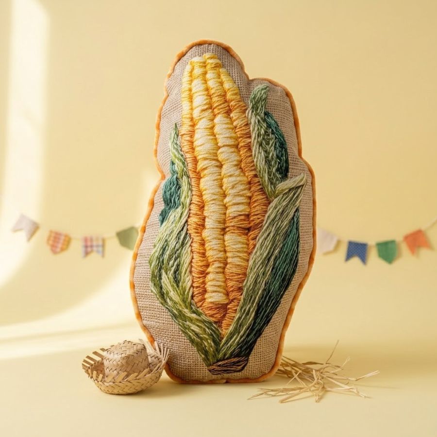 Almofada decorativa em formato de milho para festa junina