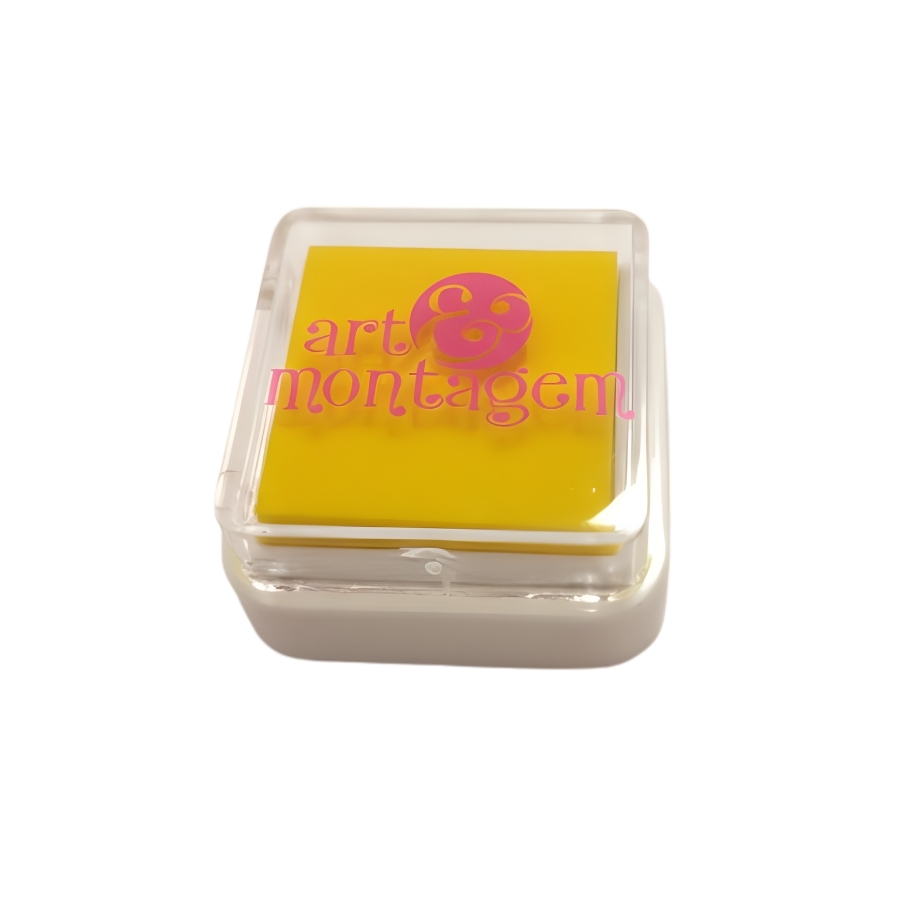 Almofada Para Carimbo em Plástico e Espuma - Carimbeira Amarela - 3,5x3,5cm - 1 unidade - Art Montagem - Rizzo