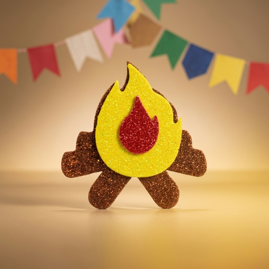O Aplique em EVA Fogueira com 3 Unidades é perfeito para enriquecer a decoração de Festa Junina com um toque criativo e brilhante. Com acabamento em EVA com glitter, ele representa a tradicional fogueira de São João, sendo ideal para personalizar lembrancinhas, painéis, convites, embalagens e trabalhos escolares, deixando tudo mais colorido, temático e encantador.
