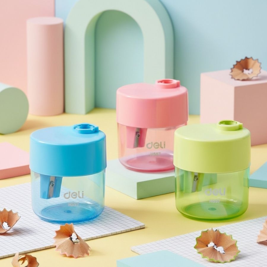 Possui reservatório integrado que armazena os resíduos do lápis, evitando sujeira na mesa, estojo ou mochila. Seu formato redondo facilita o manuseio, enquanto o tamanho compacto de 4x4x5cm garante fácil transporte e armazenamento. Compatível com lápis grafite e lápis de cor padrão, proporciona apontamento uniforme e preciso.