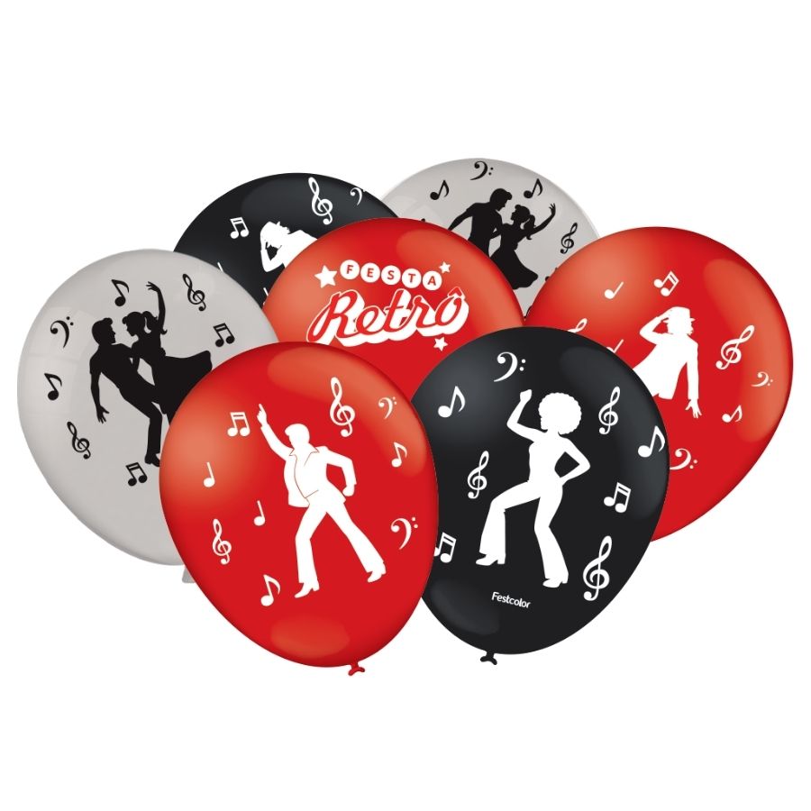 O Balão de Festa Decorado 9" (23cm) - Festa Retrô é o toque final que deixa sua decoração ainda mais divertida e cheia de estilo. Com estampa colorida e alegre inspirada nas festas clássicas, ele traz o charme nostálgico do tema retrô, perfeito para complementar painéis, mesas e arranjos de balões.