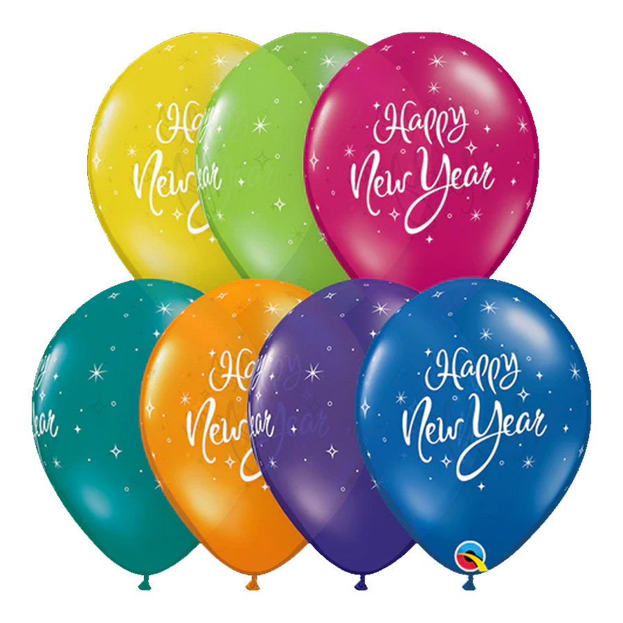 1 pacote com 50 unidades no modelo "feliz ano novo" nas cores sortidas