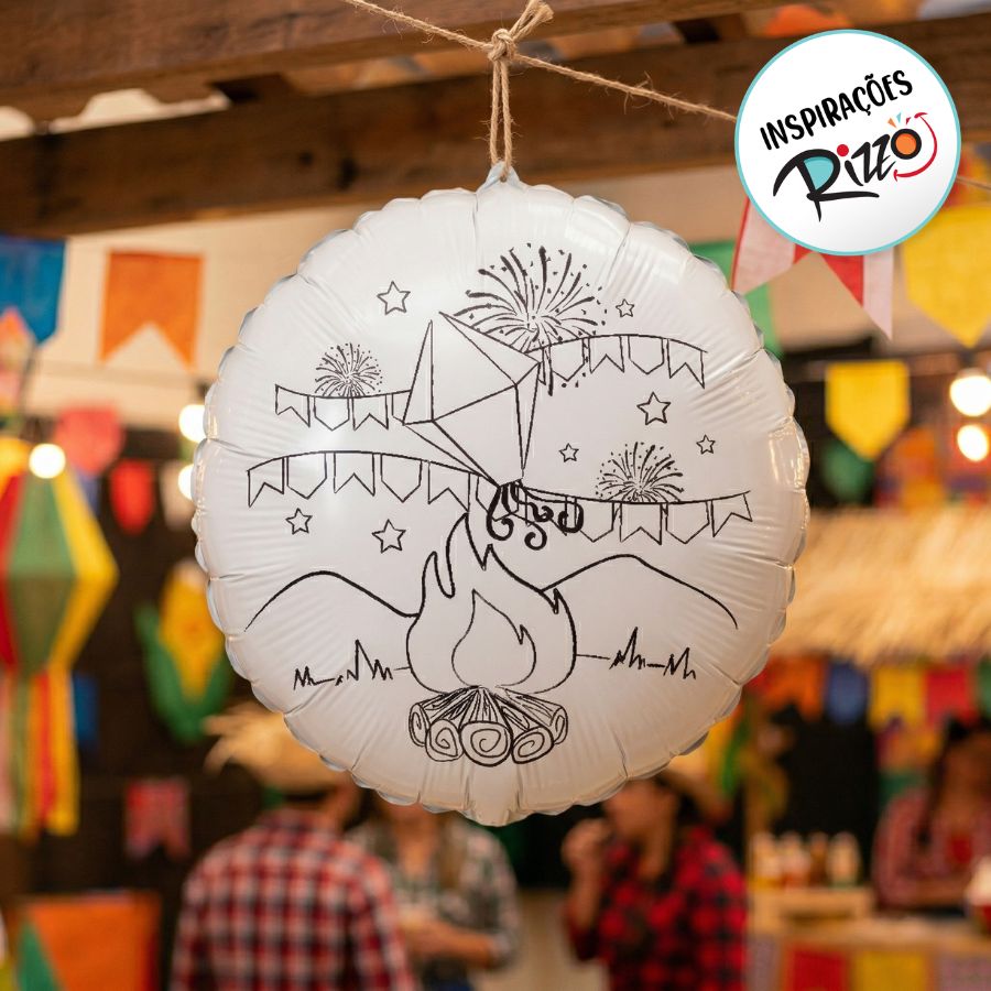 Balão de festa redondo com estampa de fogueira de sao joao na cor branco