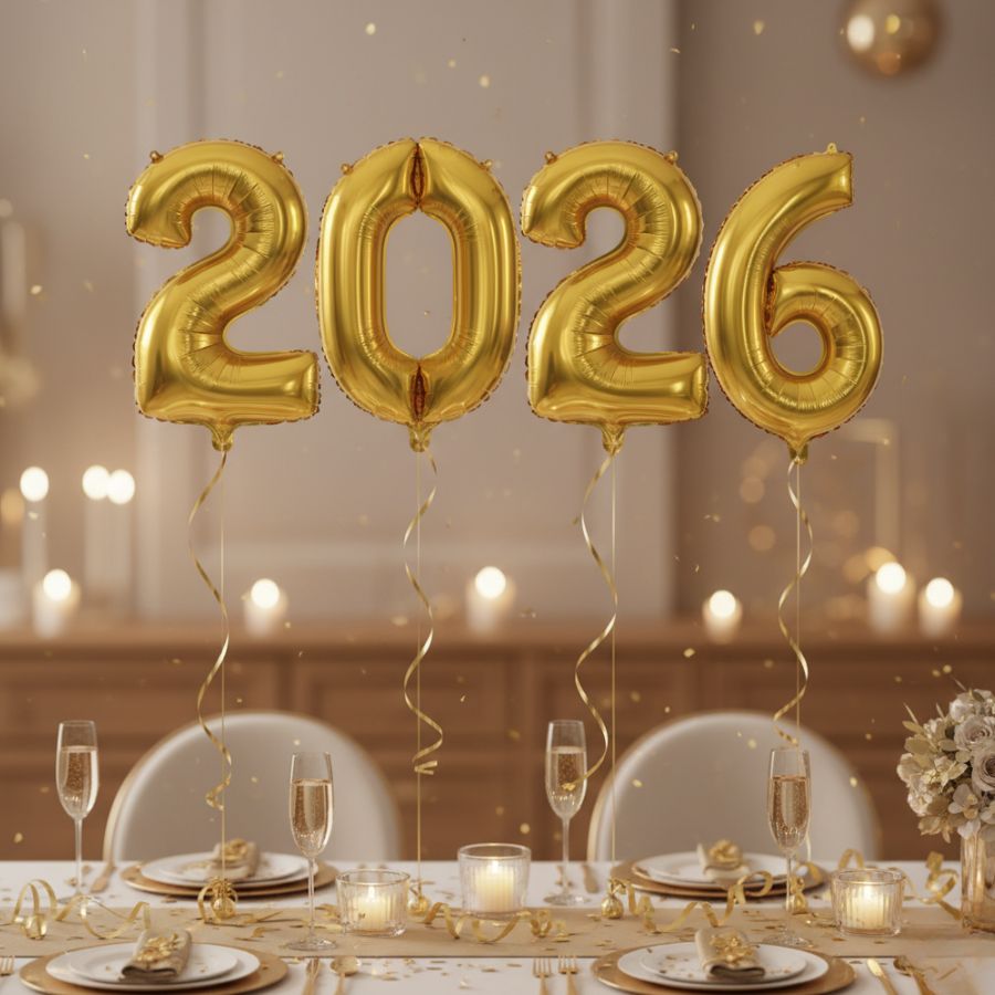 O Balão de Festa Microfoil 16" 40cm - Kit "2026" Dourado é um item compacto e elegante para decorações de festas, Réveillon ou comemorações temáticas. O kit inclui os números 2, 0, 2 e 6 em balões metalizados dourados de 40cm (16"), acompanhados de um canudo para enchimento e fitilho, facilitando a montagem e permitindo criar painéis, arcos ou centros de mesa com praticidade.