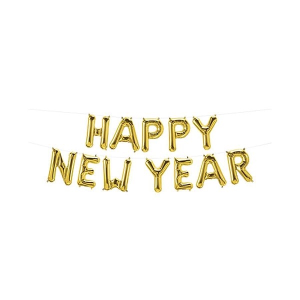Balão de Festa Microfoil 16" 40cm - New Year Ouro - 01 Unidade - Qualatex - Rizzo Balões