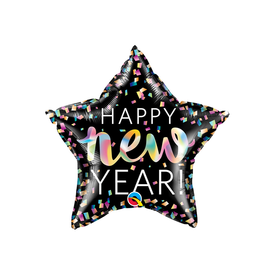 Balão microfoil no modelo Estrela Happy New Year (Feliz Ano Novo) Iridescente.