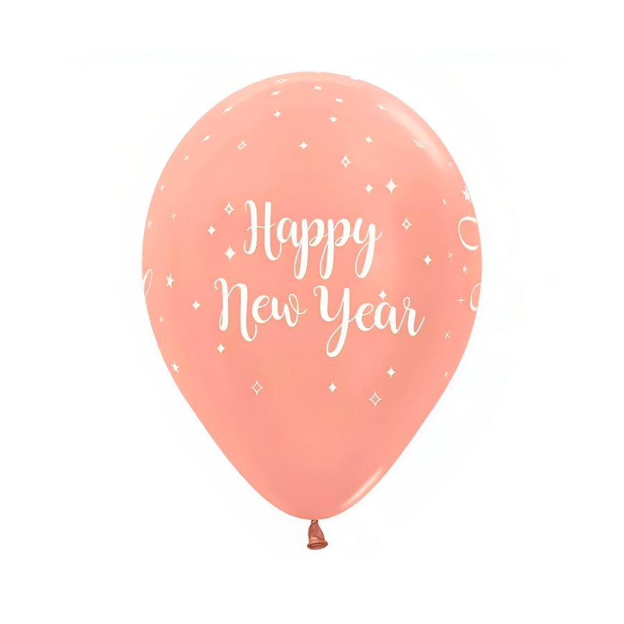 Balão de festa metalizado com estampa de ano novo na cor Rosa.