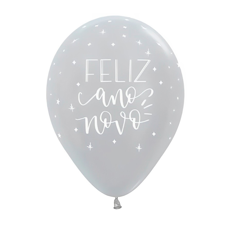 Balão de festa metalizado com estampa de ano novo na cor Cinza.