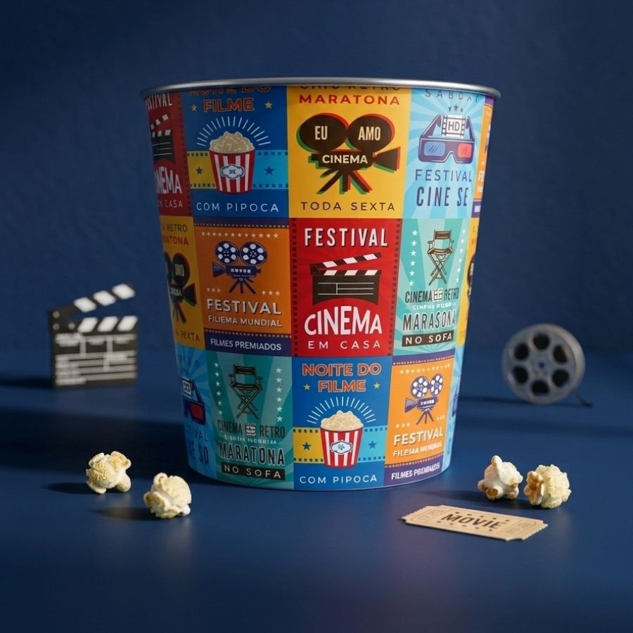 Perfeitos para usar em festas com tema cinema, noite do filme em casa, aniversários, chá de bebê e eventos escolares, os baldes podem ser preenchidos com pipoca doce ou salgada, balas, doces embalados, chocolates e outras delícias. Também funcionam como parte da decoração da mesa principal ou como lembrança personalizada para convidados. Uma dica prática é montar kits cinema, incluindo pipoca, refrigerante e doces, criando uma experiência completa e encantadora. Versáteis, resistentes e cheios de charme, os baldes de pipoca são a escolha ideal para quem deseja unir praticidade, decoração temática e uma apresentação criativa para festas e momentos especiais.