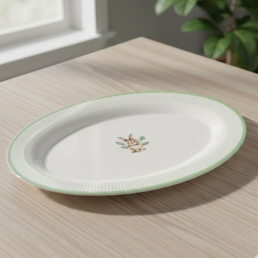 A Bandeja de Melamina é uma peça temática e elegante, perfeita para compor mesas especiais na Páscoa. Com estampa de coelho fofo e a mensagem Feliz Páscoa, traz um visual delicado e sofisticado, ideal para valorizar a decoração da mesa.