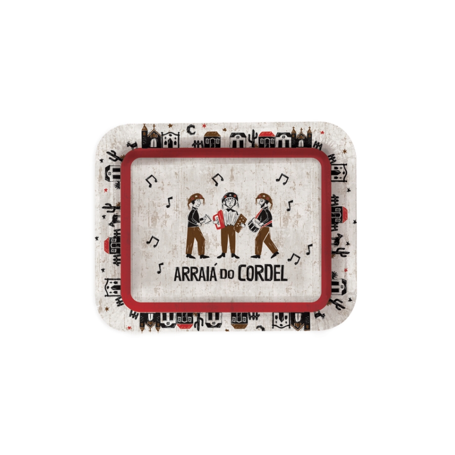 Bandeja laminada decorativa no tema cordel, 40x30cm, ideal para servir com charme e destacar a tradição da festa junina.
