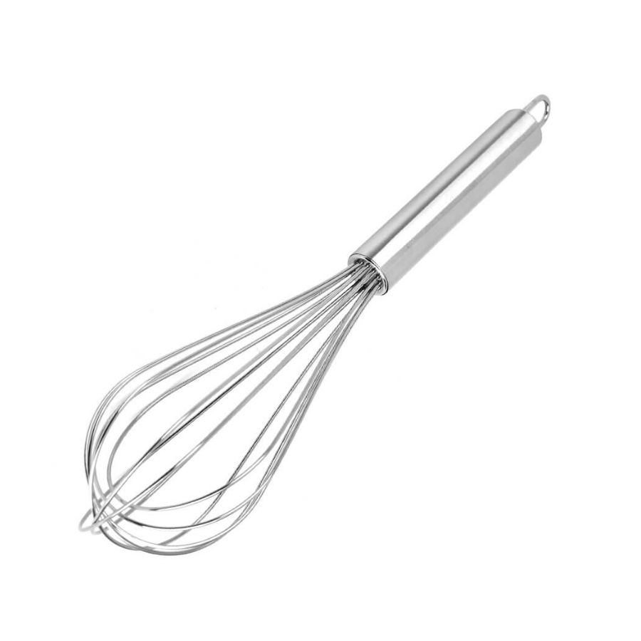 Fouet (ou batedor de ovos) em Inox com cabo de Inox. O batedor de ovos é indispensável em qualquer cozinha pois auxília nos variados preparos dentro da Confeitaria.