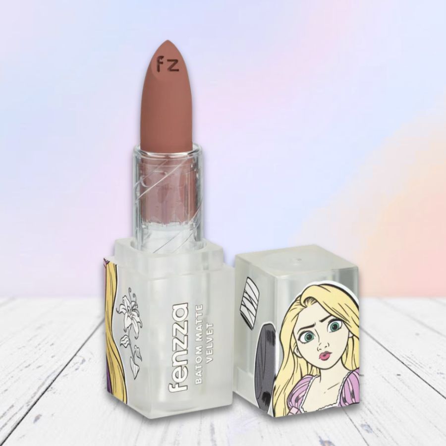 Batom matte velvet em formato bastão inspirado em Princesas Disney.