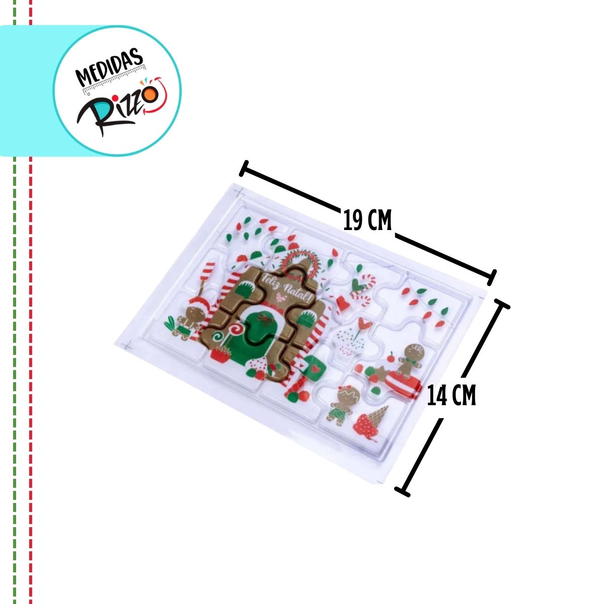 O Blister Decorado com Transfer Para Chocolate - Quebra-Cabeça - BLN 0078 é perfeito para quem quer produzir chocolates com um toque criativo e visual diferenciado. O molde possui cavidades em formato de quebra-cabeça, com estampas natalinas variadas, que são transferidas diretamente para o chocolate durante o preparo, resultando em peças decoradas, coloridas e com acabamento profissional. Uma opção encantadora para lembrancinhas, presentes e produções temáticas de Natal.