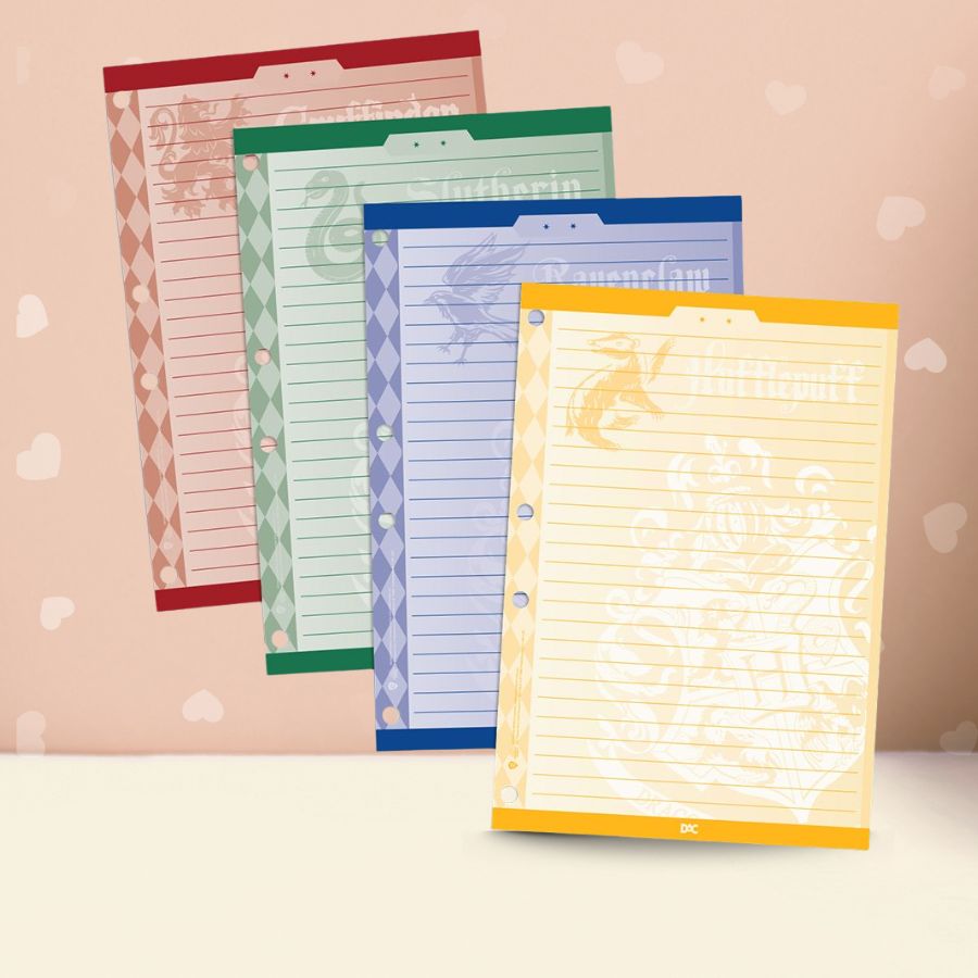 O Bloco Refil para Fichário – Harry Potter no formato 15x22cm é ideal para quem utiliza mini fichário colegial e busca organização com identidade temática. Desenvolvido para uso prático no dia a dia de estudos, o Refil para Mini Fichário Harry Potter possui 96 folhas pautadas e decoradas, distribuídas em 4 cores diferentes que remetem às casas de Hogwarts: Grifinória, Sonserina, Corvinal e Lufa-Lufa. As cores ajudam na separação de matérias, conteúdos ou períodos de estudo, facilitando a visualização e a rotina escolar. O furo padrão com 4 perfurações permite encaixe perfeito em mini fichários, garantindo praticidade na organização e no manuseio.