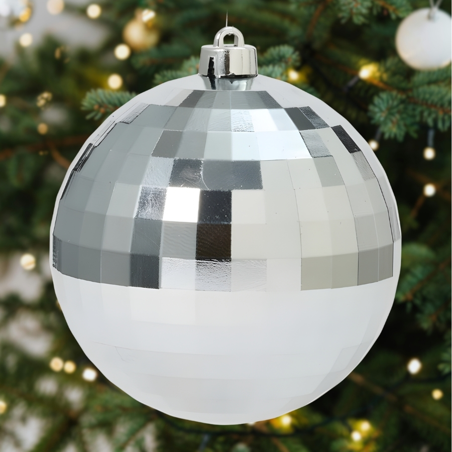 A tonalidade prata, combinada com o efeito disco, torna essa bola ideal para árvores grandes, vitrines, decorações profissionais e ambientes que exigem presença marcante. Ela adiciona profundidade, elegância e estilo contemporâneo à composição natalina.