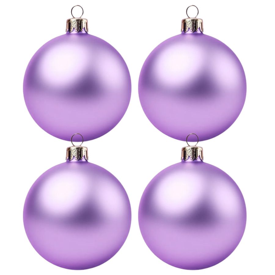 Bolas de Natal lilás em diferentes tamanhos, ideais para decoração de árvores, guirlandas e arranjos festivos. Os tons de lilás podem variar.