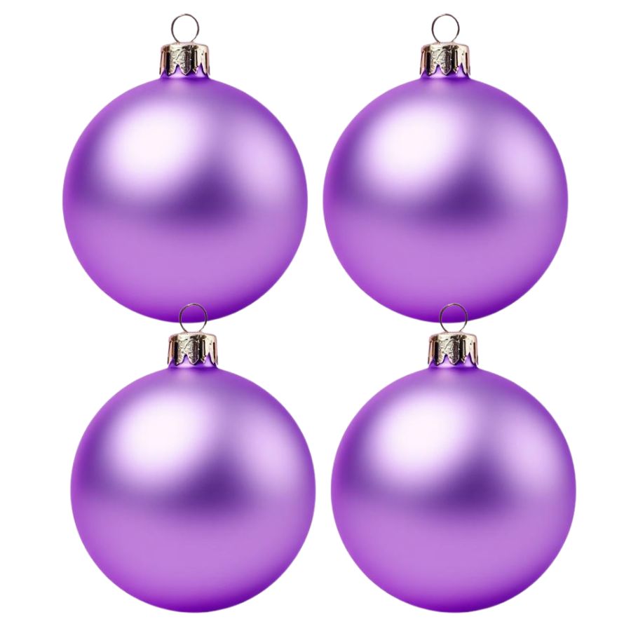 Bolas de Natal roxa em diferentes tamanhos, ideais para decoração de árvores, guirlandas e arranjos festivos. Os tons de roxo podem variar.