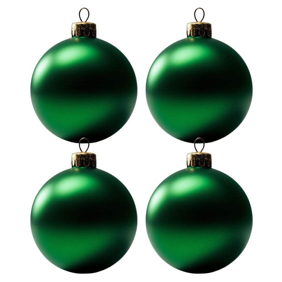 Bolas de Natal verde escuro em diferentes tamanhos, ideais para decoração de árvores, guirlandas e arranjos festivos. Os tons de verde escuro podem variar.