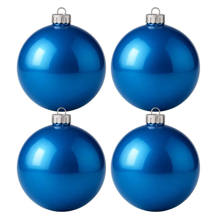 Produzidas em material resistente, são práticas de manusear e permitem combinar múltiplas unidades, criando efeitos variados em árvores, coroas e demais decorações. Seu tom azul, que pode apresentar leves variações, remete à tradição natalina e se integra naturalmente a qualquer cenário festivo.