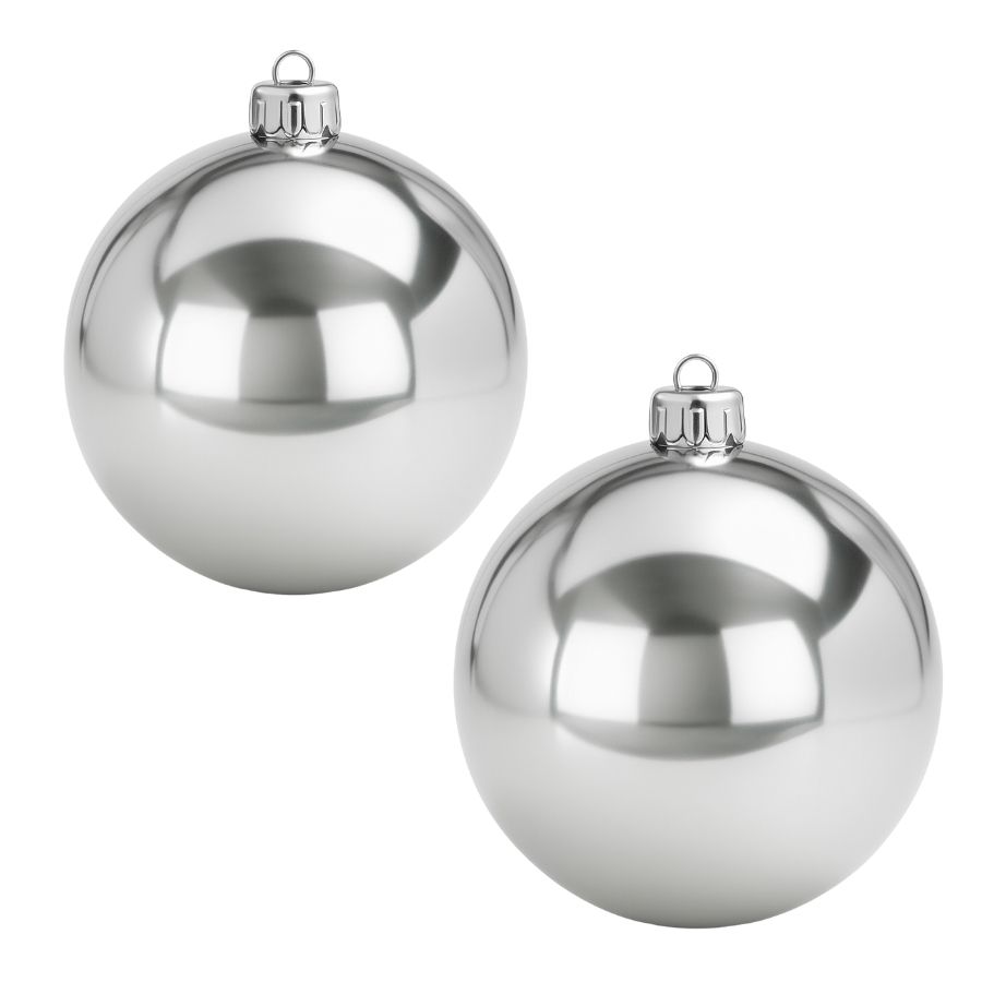 Bolas de Natal Prata em acabamentos variados e tamanhos 12cm e 15cm. Tons podem variar, garantindo sofisticação e harmonia na decoração.