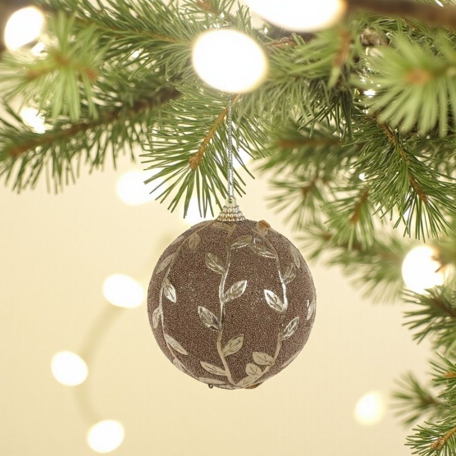 As Bolas de Natal Texturizada Folha Marrom/Branco de 10cm são resistentes, elegantes e versáteis — perfeitas para decorações natalinas rústicas, naturais e sofisticadas.