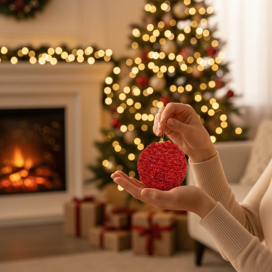 Produzida em material leve e resistente, é fácil de pendurar e harmoniza com tons dourados, prateados ou brancos, criando composições tradicionais e encantadoras. O tamanho de 8cm é ideal para árvores médias e grandes, garantindo equilíbrio visual e luminosidade à decoração.