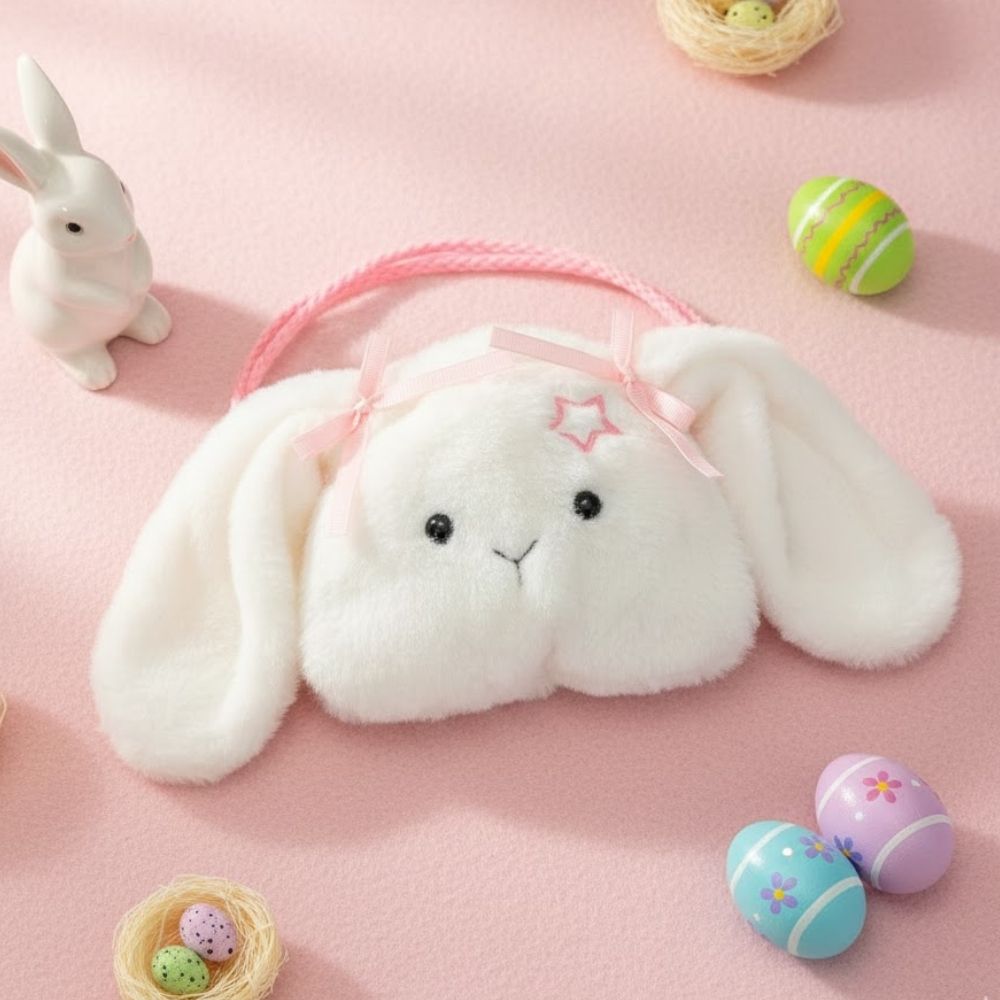A Bolsinha de Páscoa em formato de cabecinha de coelho é um item encantador e cheio de delicadeza. Na cor branca, o coelhinho traz detalhes que deixam a peça ainda mais fofa, como os lacinhos rosa em cada orelha e a estrelinha rosa aplicada no rostinho. Um design lúdico e carinhoso, perfeito para a Páscoa ou para presentear crianças.