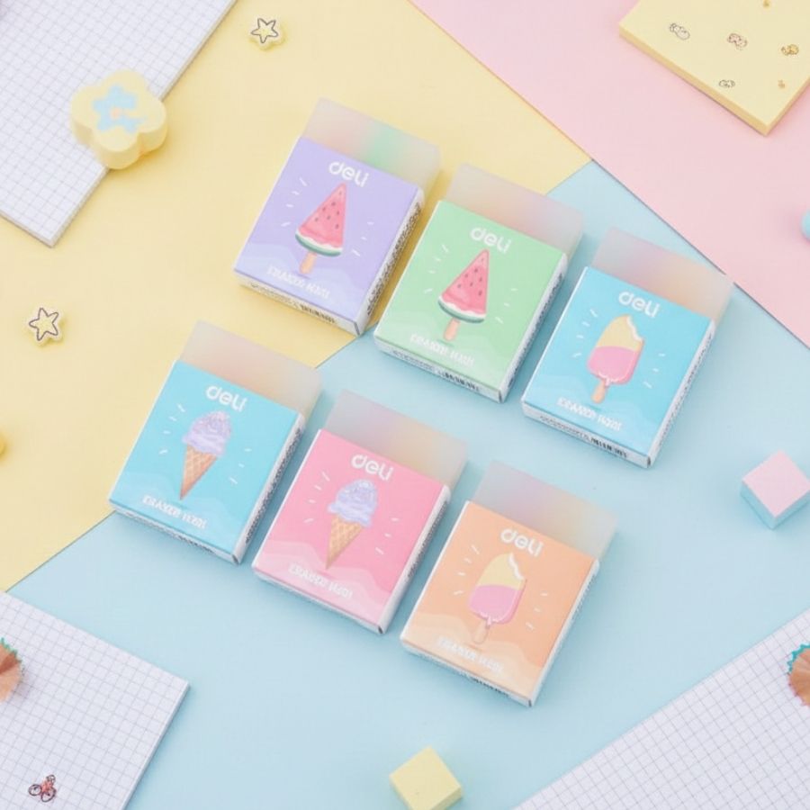 Com design inspirado em ice cream (sorvete), essa borracha encanta crianças e adolescentes, tornando o material escolar mais atrativo e lúdico. Seu formato retangular facilita o manuseio e garante boa precisão ao apagar. As dimensões compactas de 3x2x1cm permitem que seja facilmente transportada no estojo, mochila ou nécessaire.
