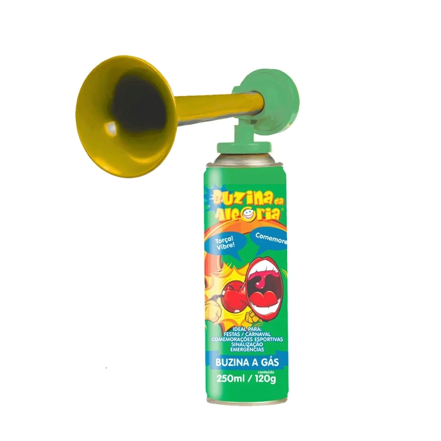 A Buzina a Gás - Buzina da Alegria - 250ml possui spray pressurizado de fácil acionamento, com som intenso e duradouro. Prática de transportar e utilizar, é segura e eficiente para uso recreativo em festas, jogos e confraternizações.