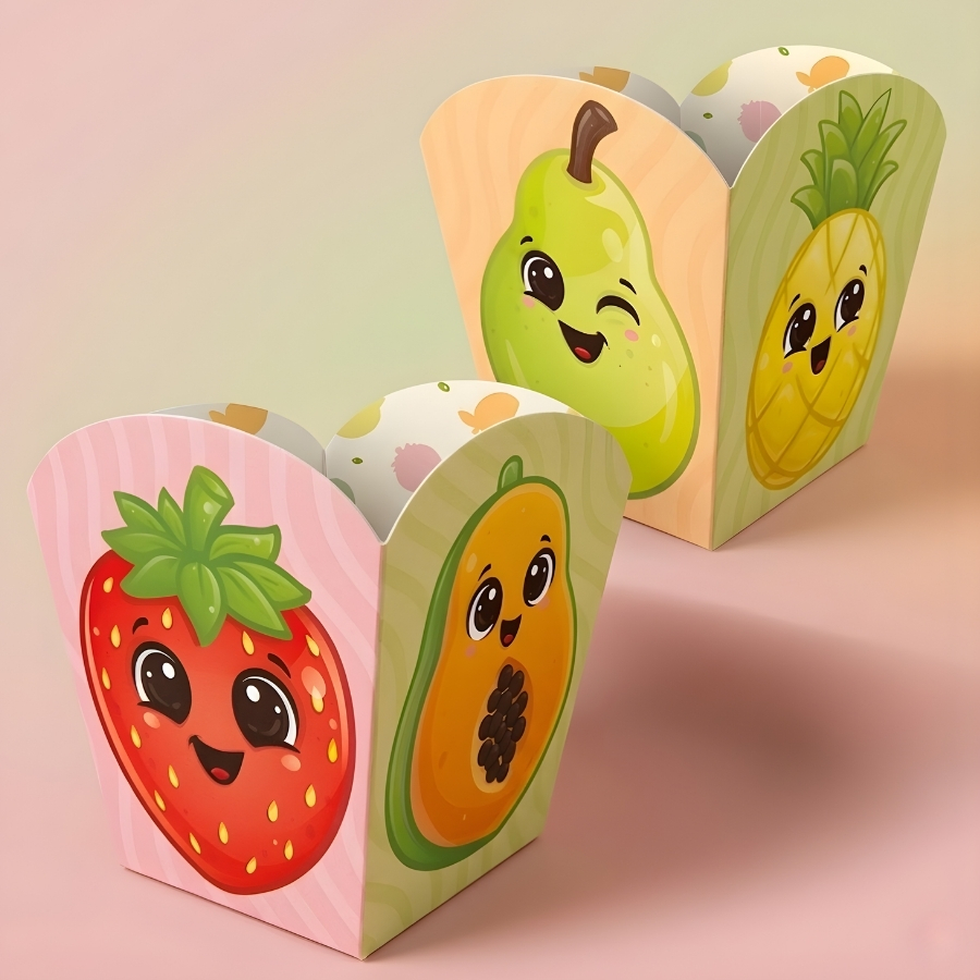 Cachepot com temática de frutinhas, medindo aproximadamente 8x9x8cm. Indicado para uso decorativo em mesas, festas e eventos. Pode ser utilizado para acondicionamento de pequenos itens ou como elemento decorativo. Produto de uso ornamental. Pode apresentar variações nos elementos visuais, como cores e ilustrações. Recomenda-se manter em local seco para melhor conservação.