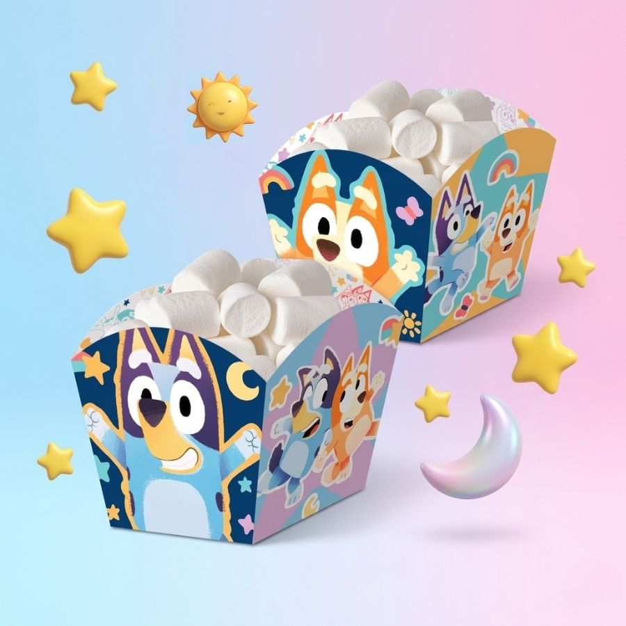 Cachepot médio Bluey 8x8x9cm ideal para decoração, lembrancinhas e organização. Prático, temático e versátil, perfeito para festas infantis e montagem de kits criativos.