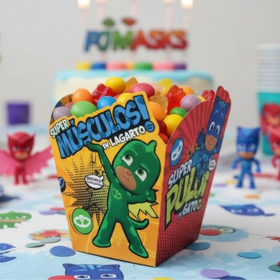 O Cachepot Papel Festa PJ Masks 8 unidades é prático, colorido e ideal para organizar doces e lembrancinhas em festas infantis com estilo e diversão.