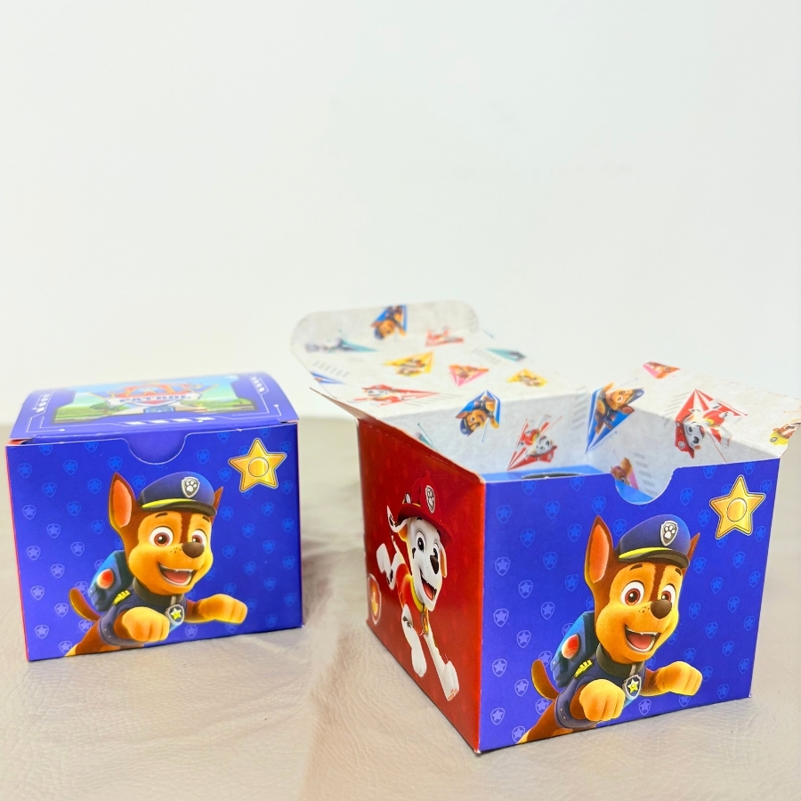 A Caixa 4 Doces Quadrada Patrulha Canina 6x7,5x7,5cm é perfeita para tornar qualquer festa ainda mais encantadora e organizada.