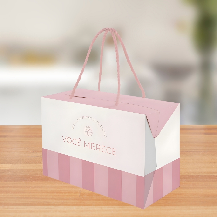 Além de visualmente atraente, a caixa conta com uma alça resistente que facilita o transporte e melhora a experiência de quem recebe. Ideal para produtos artesanais, cosméticos, pequenos mimos e lembranças, ela oferece uma solução prática para quem deseja valorizar cada detalhe da embalagem e transmitir cuidado já no primeiro contato.
