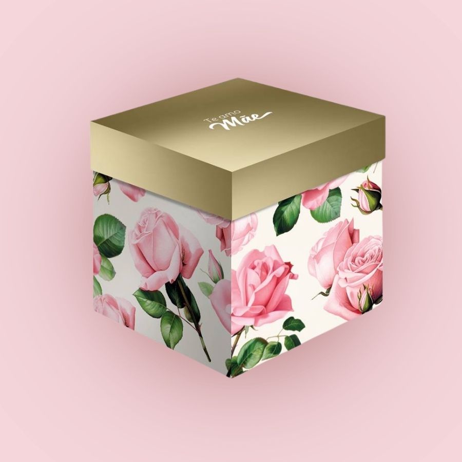 Caixa cubo temática Mãe Clássica com tamanho de 11x11x11cm, ideal para montar presentes e kits especiais de Dia das Mães com uma apresentação elegante e delicada.