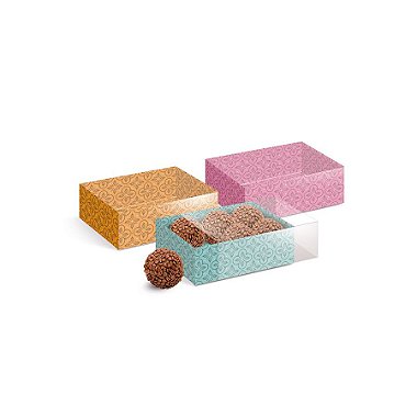 Caixa Luva com Tampa de Acetato para 2 Doces - 7,5X7,5X4,5 cm - Chocolatier - 8 un. - Cromus