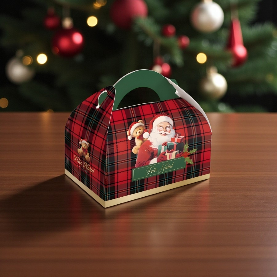 A Caixa Maleta para Presente Magia Infinita é confeccionada em papel cartão resistente, com alça prática e estampa natalina de alta qualidade. Seu formato permite fácil transporte e reutilização, funcionando também como item decorativo ou organizador, ideal para incrementar a apresentação de seus presentes.