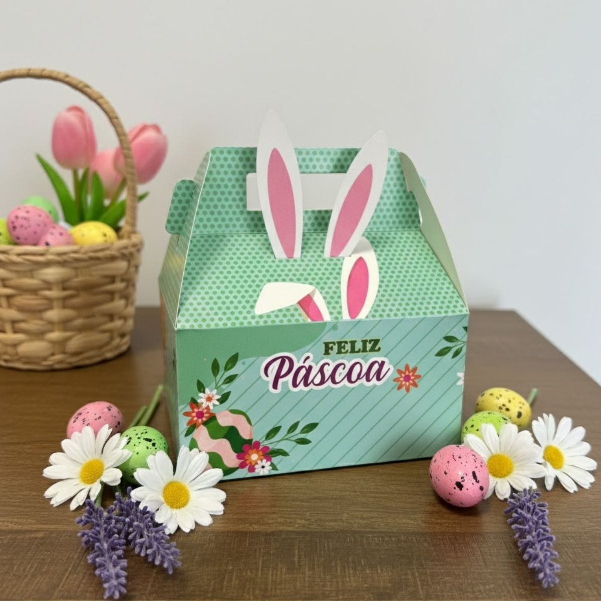 Produzida em material leve e resistente, é fácil de montar, fechar e carregar. Ideal para doces, mini presentes, chocolatinhos e lembranças em geral. Um item prático que agrega valor visual e deixa qualquer composição de Páscoa mais encantadora.
