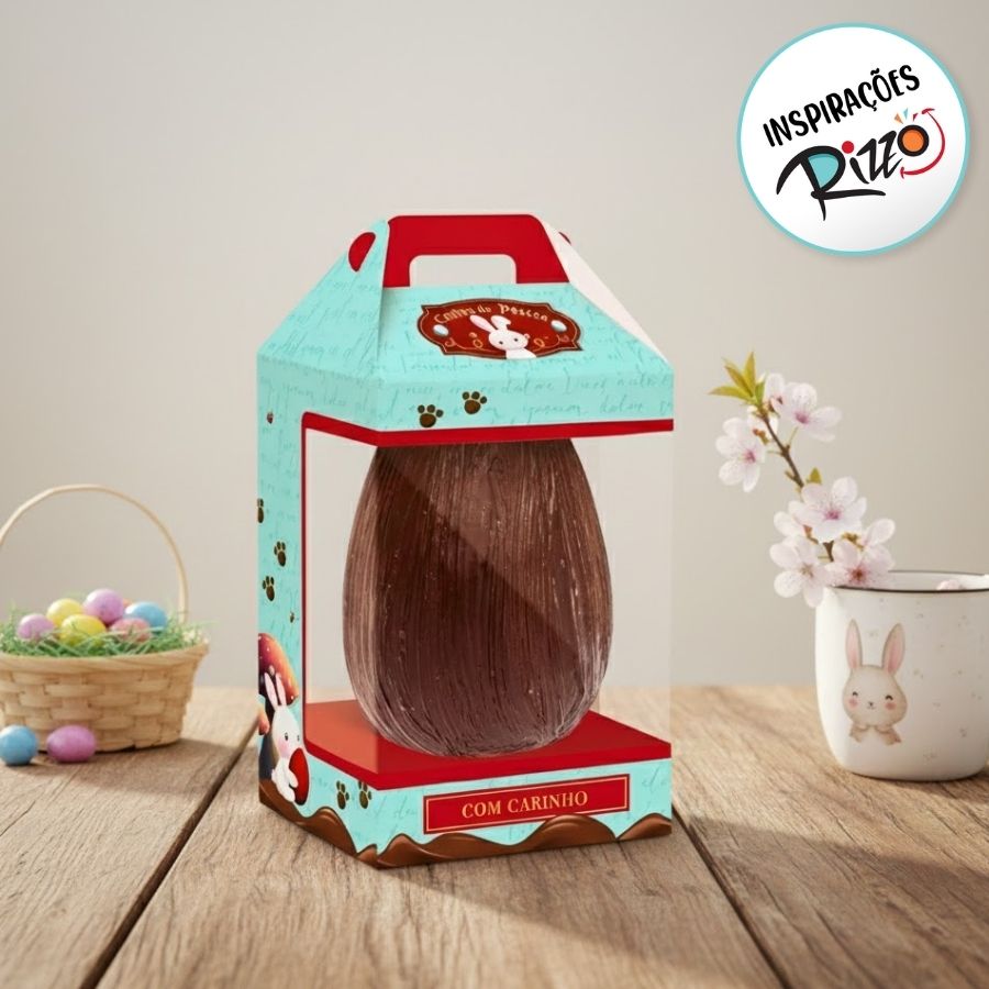 Caixa New Maleta para Ovo de 350g com Visor – Contos de Páscoa é uma embalagem encantadora, com acabamento ilustrado e cores suaves que remetem ao clima lúdico e festivo da data. Seu design em formato de maletinha proporciona uma apresentação diferenciada e elegante, tornando o presente ainda mais especial. O visor transparente permite visualizar o ovo decorado, destacando o produto e valorizando cada detalhe.