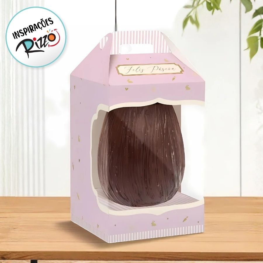 A Caixa New Maleta para Ovo de 350g com Visor - Quinn Lilás é uma embalagem sofisticada e moderna, desenvolvida para realçar a apresentação de ovos artesanais de 350g com muito charme. Fazendo parte da linha Quinn Lilás, ela combina tons suaves, acabamento refinado e um visual contemporâneo que transmite delicadeza e elegância. O visor frontal transparente permite ver o chocolate sem abrir a embalagem, valorizando ainda mais o produto.