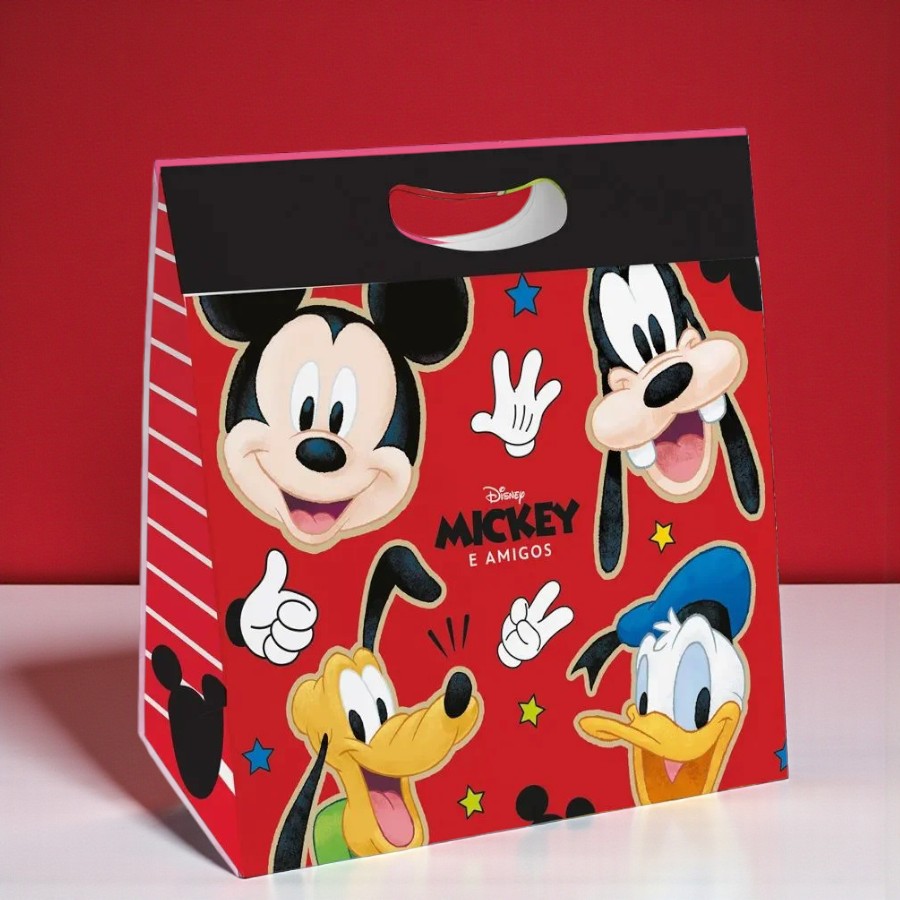 Embalagem de papel com estampa inspirada em Turma do Mickey Disney