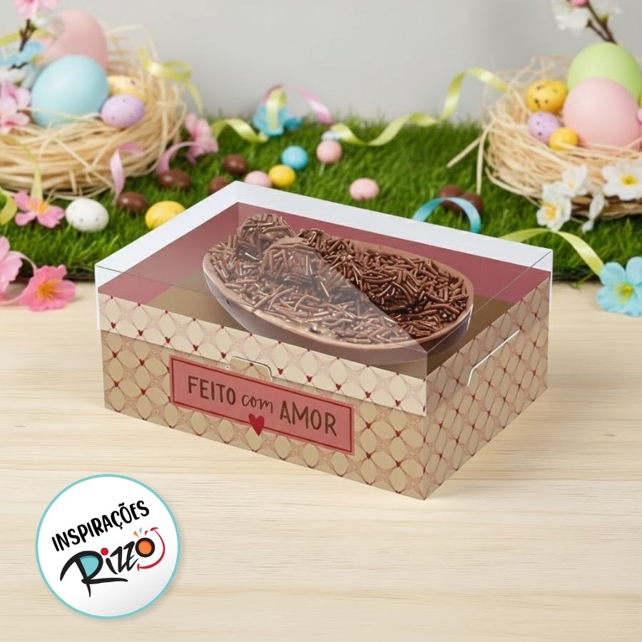 A Caixa New Practice para Meio Ovo de 250g - Feito com Amor é uma embalagem encantadora, desenvolvida para valorizar cada detalhe do seu meio ovo artesanal. Com o visual delicado da linha Feito com Amor, ela traz cores suaves, acabamento caprichado e um estilo romântico que transmite carinho já na apresentação. Sua estrutura firme oferece proteção ao chocolate, garantindo segurança e beleza em um único produto.
